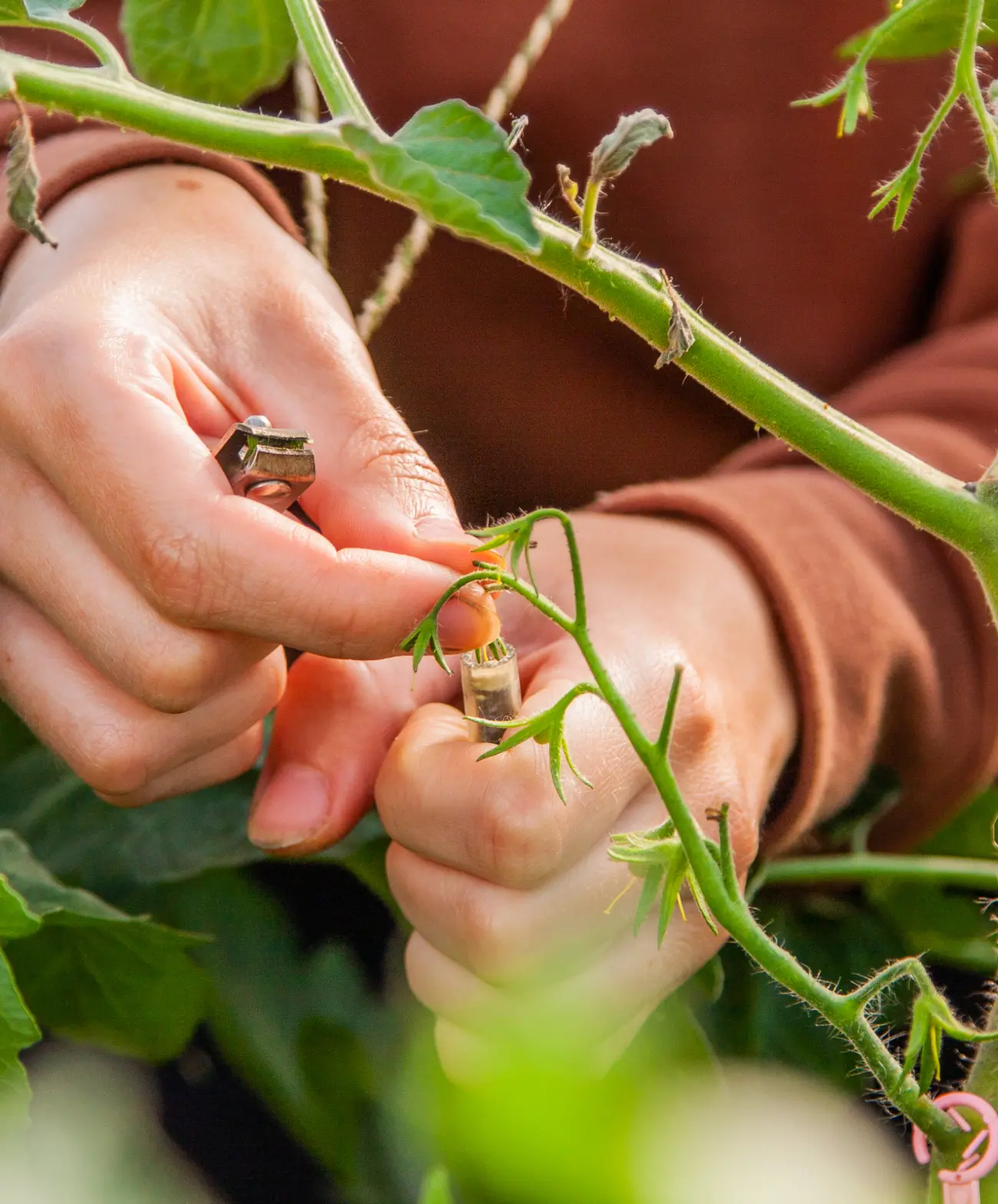 Onze planten groeien uitsluitend in de grond, krijgen een afgepaste hoeveelheid water en voedingsstoffen en wij gebruiken geen chemische bestrijdingsmiddelen of kunstmest. Onze veredeling bestaat uit observatie, kruising en selectie. Observatie helpt ons om planten met gewenste eigenschappen (zoals smaak, vorm, kleur en resistenties tegen ziekten en plagen) te herkennen. Hierna worden kruisingen gemaakt tussen verschillende geselecteerde planten en hiervan oogsten wij het zaad. Wanneer we dit plant-generaties achter elkaar doen, komen we steeds een stapje dichterbij rassen met de beste eigenschappen. Op deze manier ontstaan robuuste, krachtige en productieve rassen die uitermate geschikt zijn voor het telen onder biologische omstandigheden. Dit hele proces doen wij in nauwe samenspraak met biologische telers voor wie we deze rassen ontwikkelen.